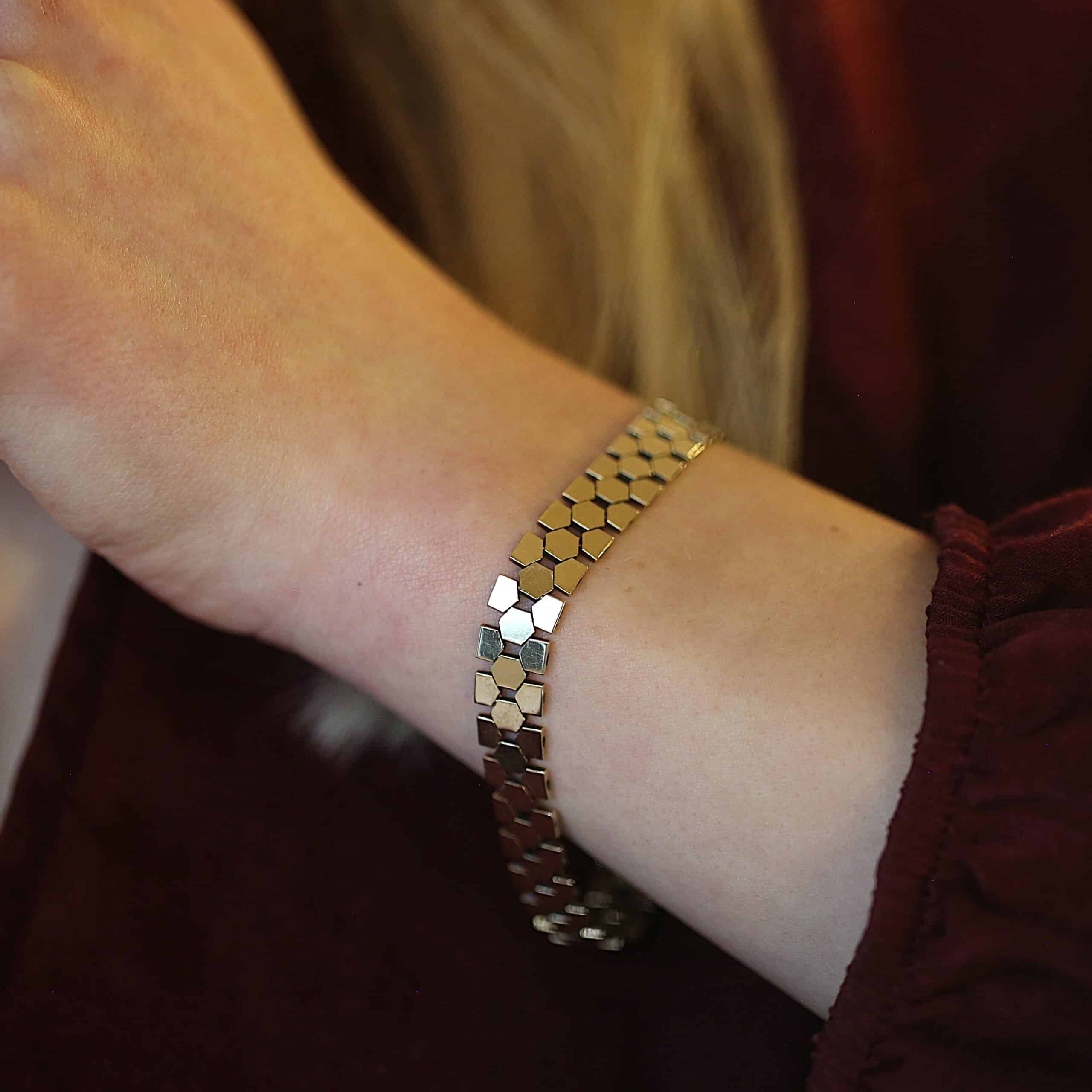 Bicube armbånd i 14 karat guld (19.3cm)