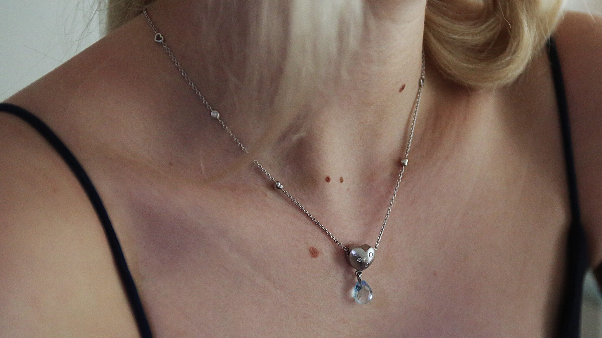 Ole Lynggaard hvidguldshalskæde (med hjertenøglelås) diamanter og topas
