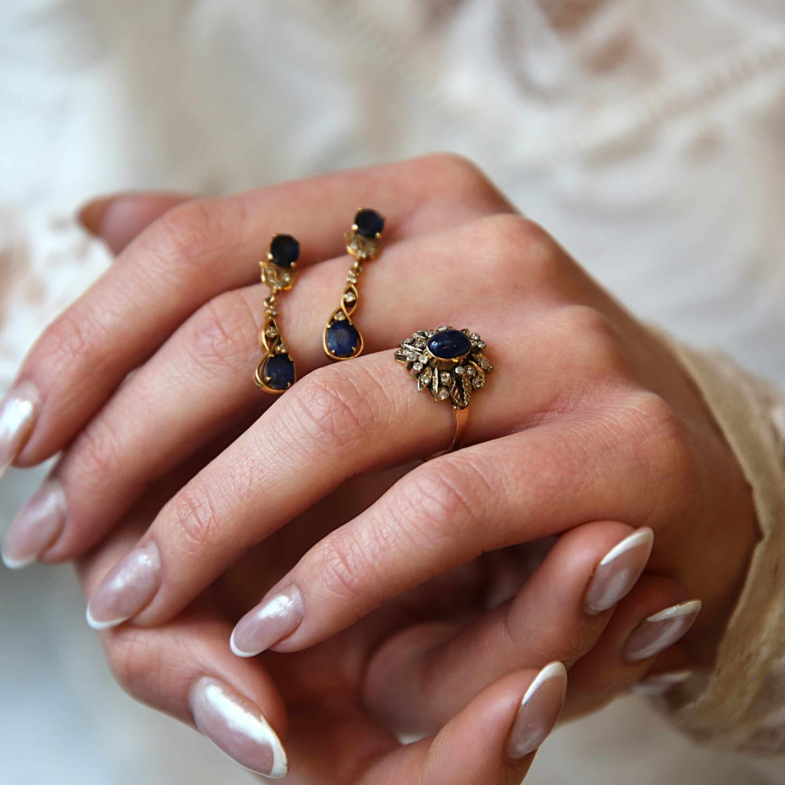 18 karat guldsæt (safir & diamanter)
