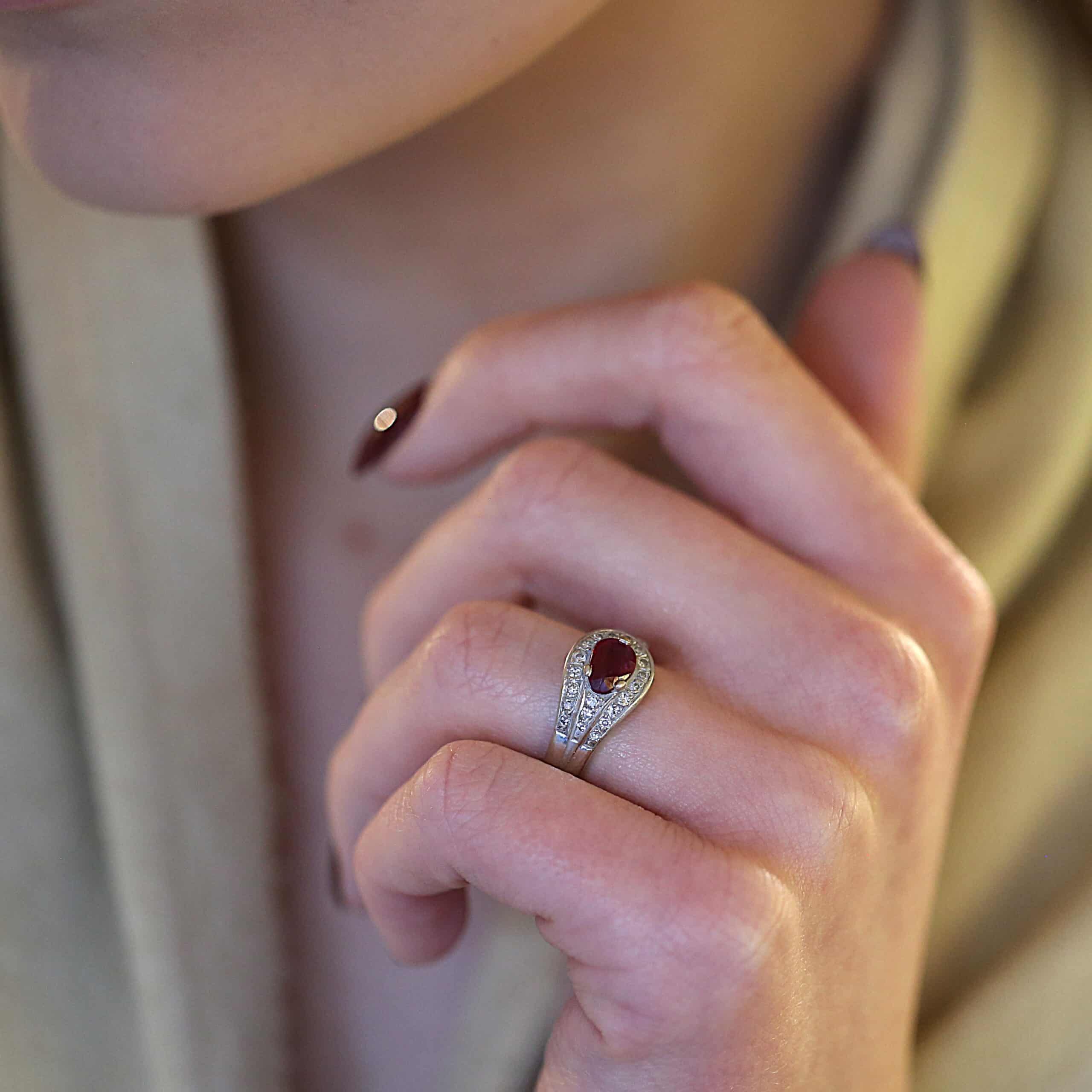 14 karat hvidguldsring (Rubin & diamanter)