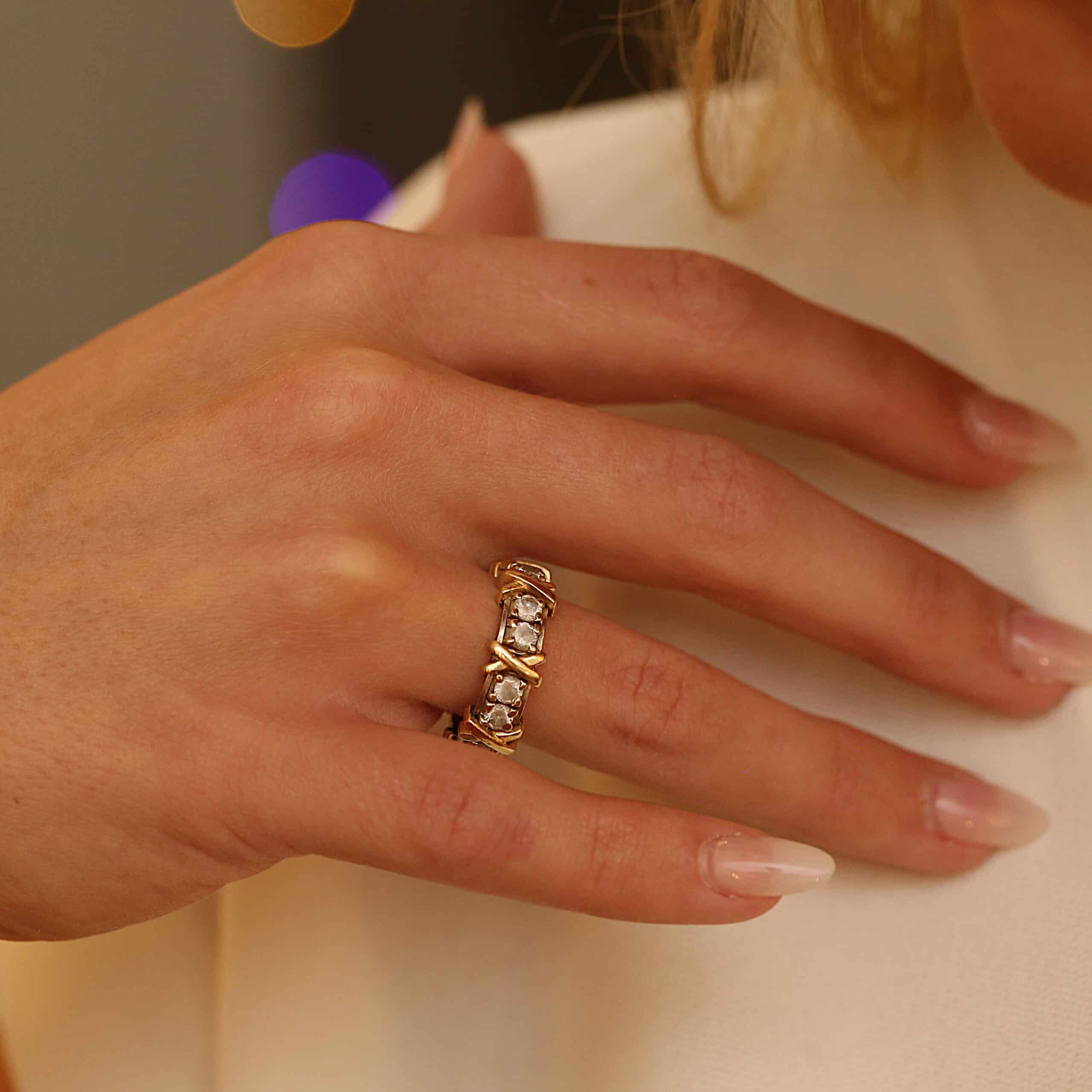 Hvidguldsring i 14 karat (Detaljer gul guld)