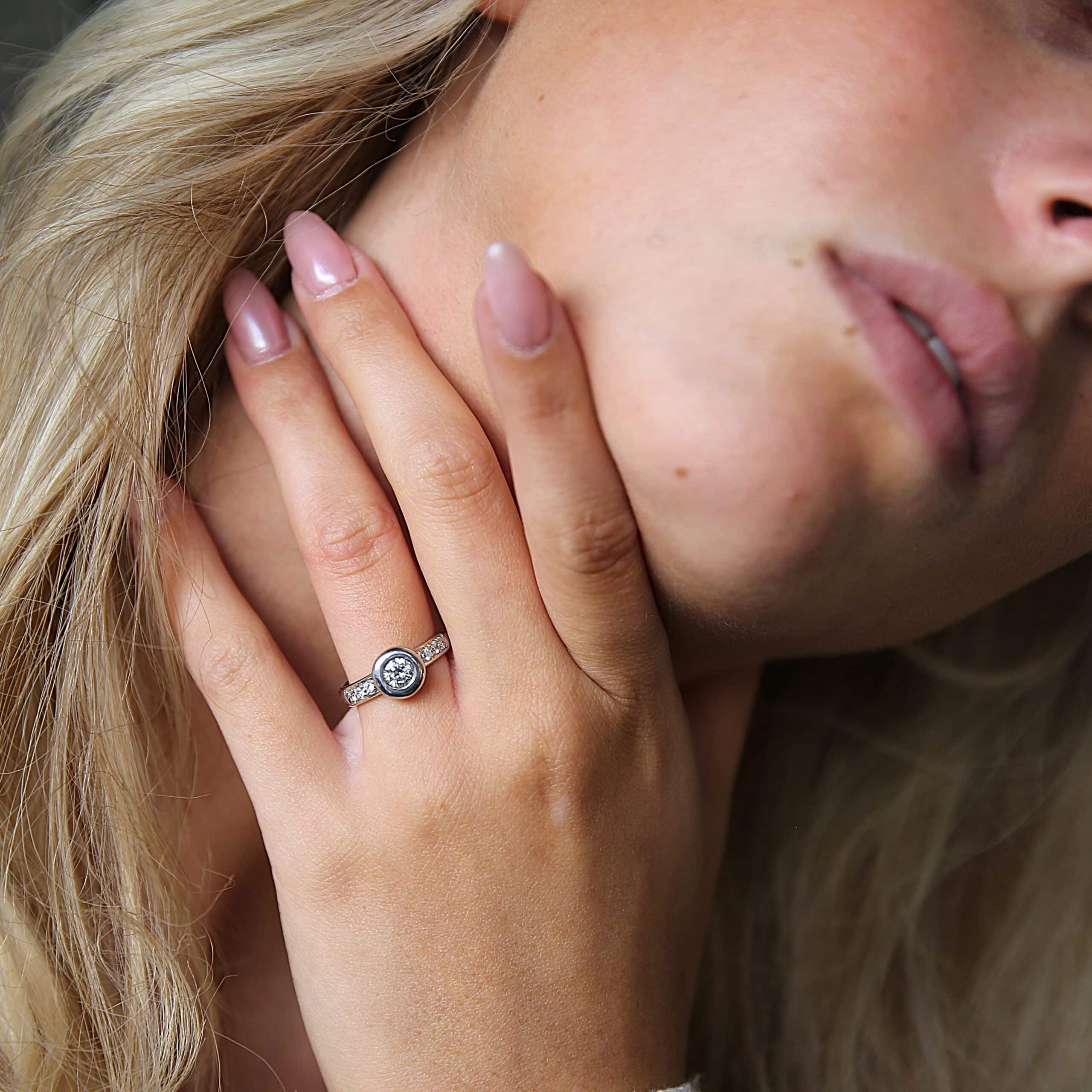 Meget smuk 18 karat hvidguldsring med diamanter
