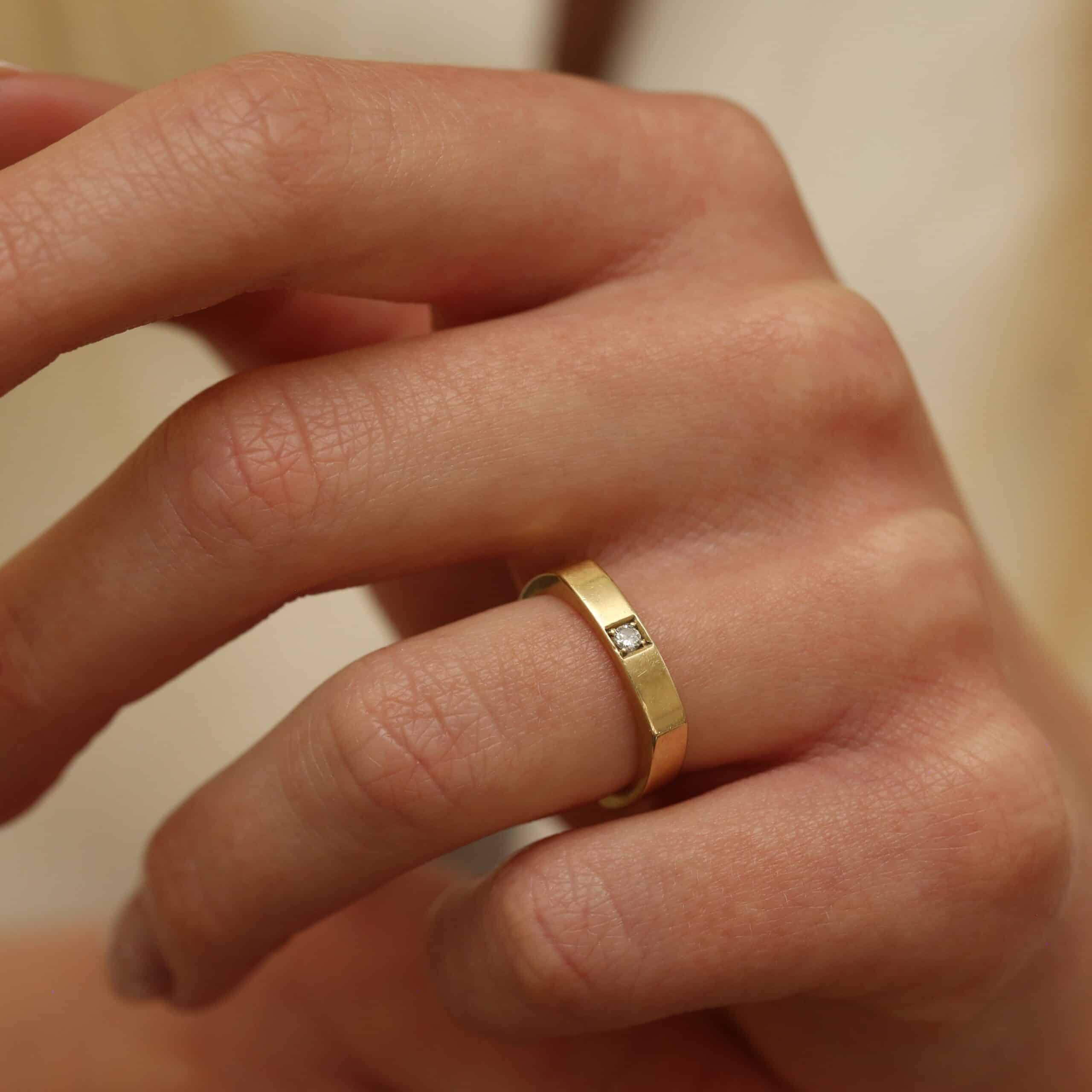 Ring i 14 karat guld (kantet – med en enkel diamant)