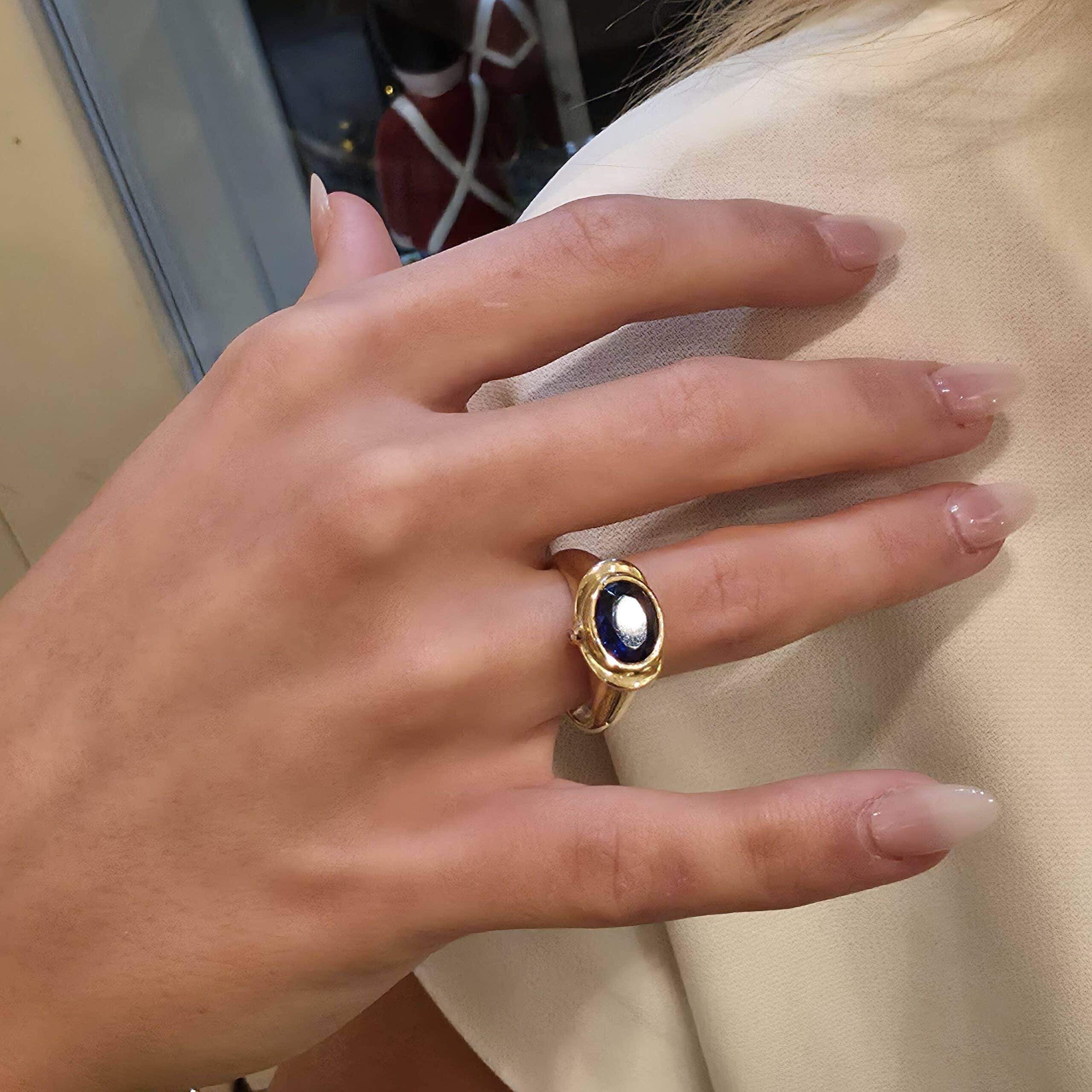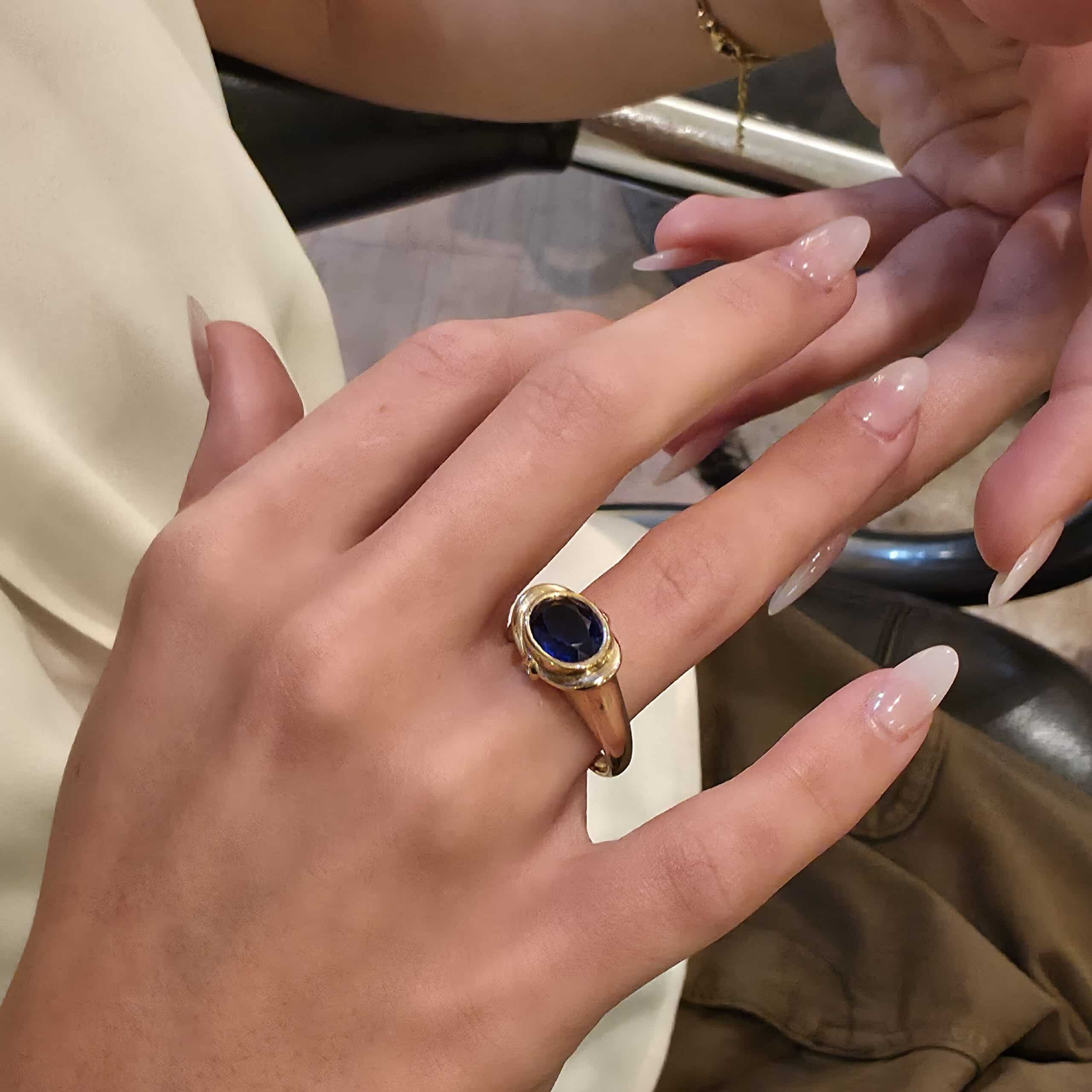 Ring i 14 karat guld med safir og diamanter