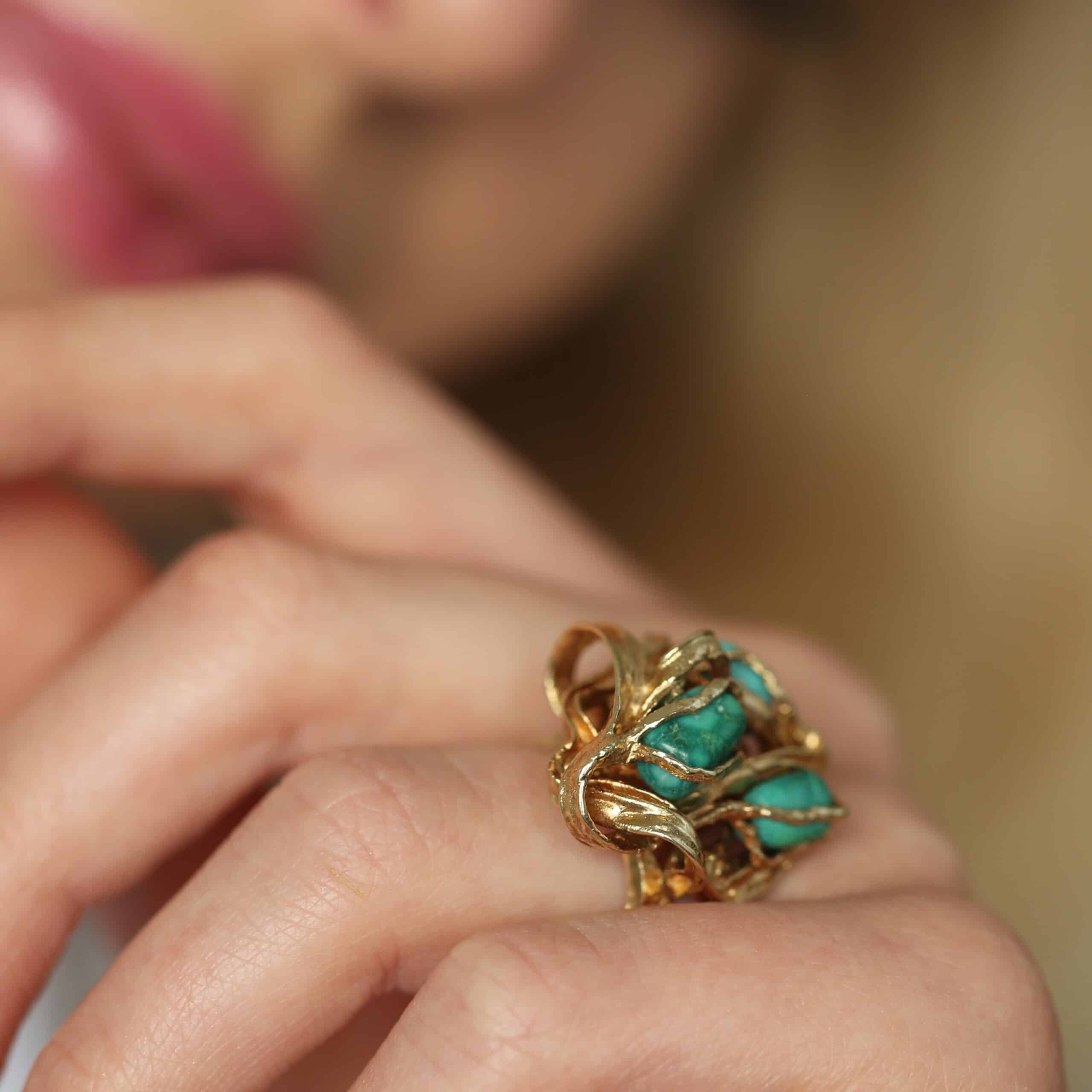 Helt unik og spændende ring i 14 karat guld med Turkis ædelsten