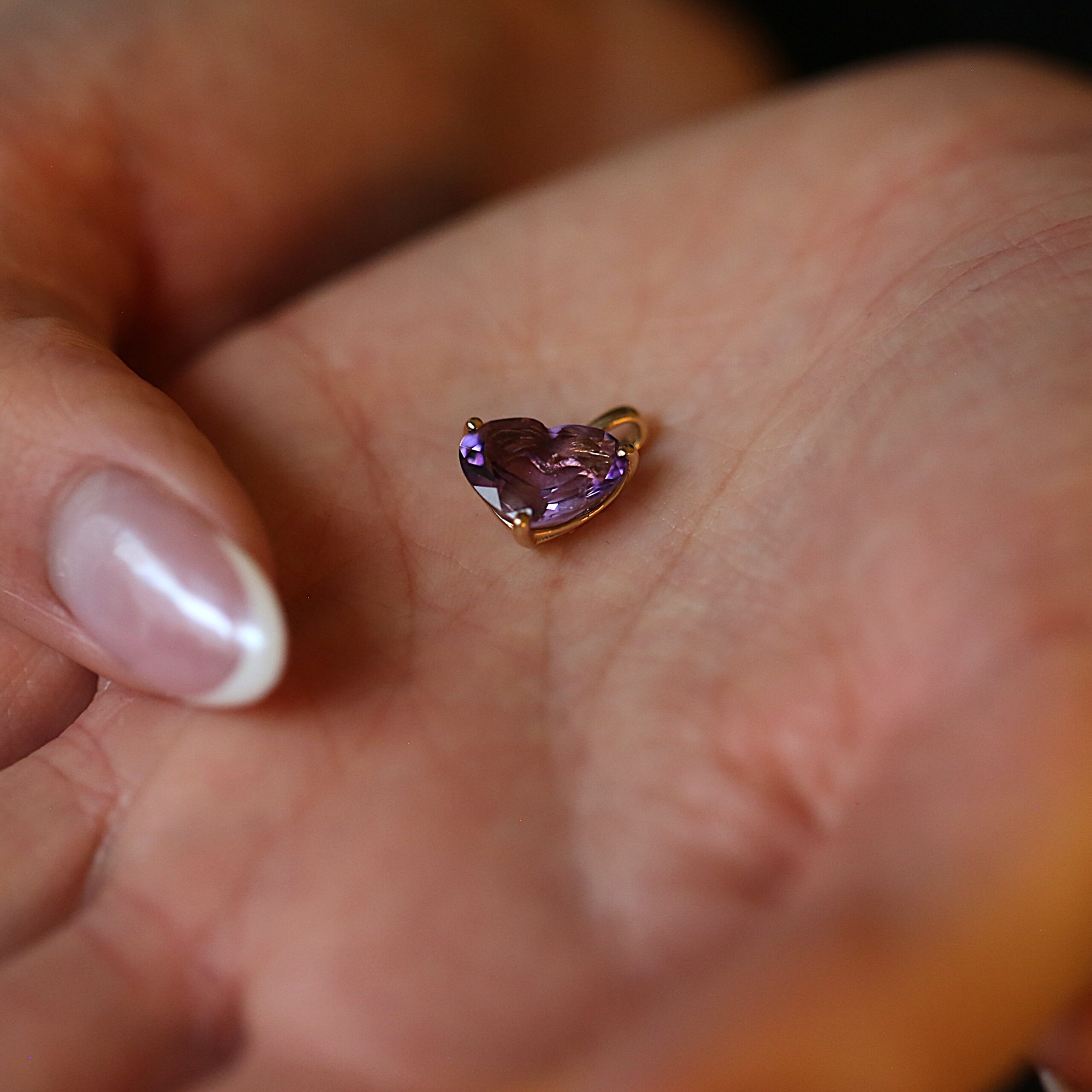 Hjerte vedhæng i 14 karat guld (ægte ametyst)