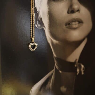 Hjerte vedhæng m. diamanter 14kt